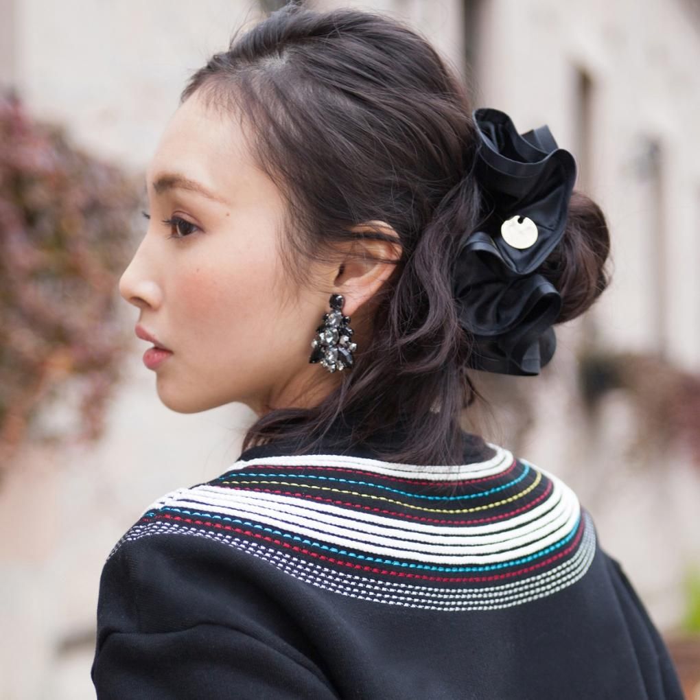 ヘアを華やかに彩る大ぶりなサイジングで、オケージョンにもピッタリです。