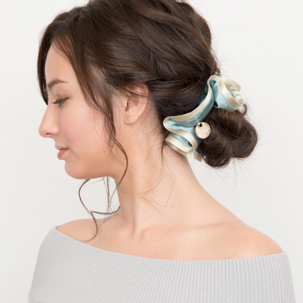 2種の光沢のあるサテン地で上品に仕上げたシュシュ。