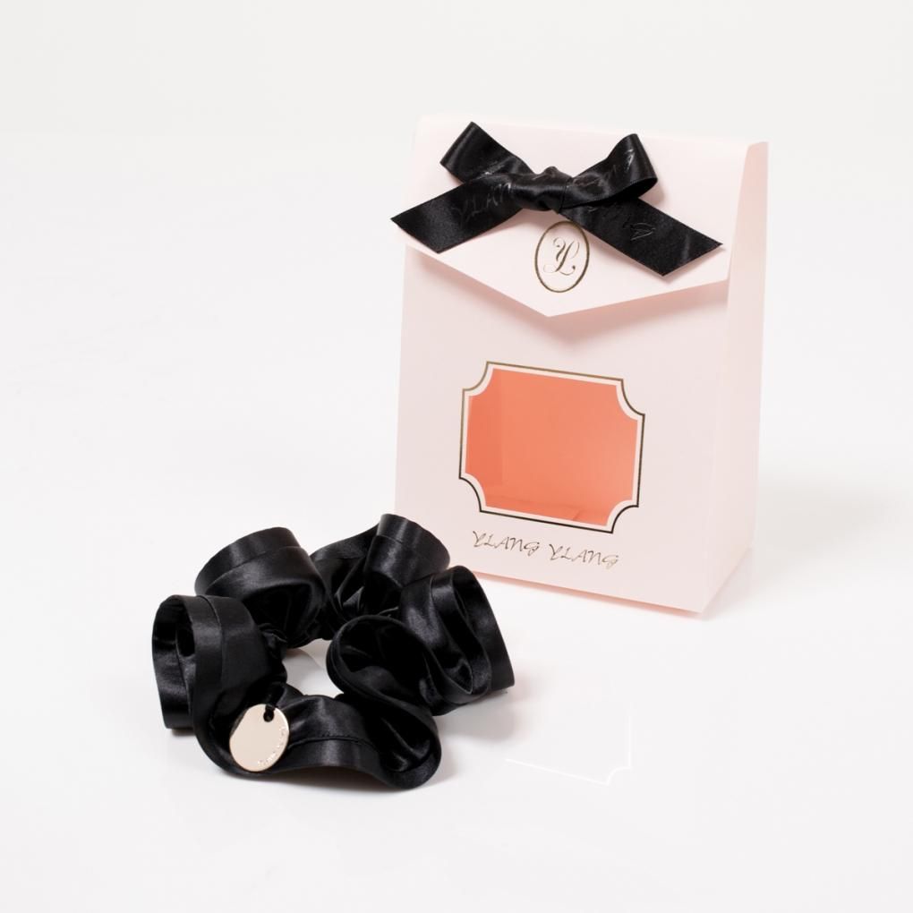 2種の光沢のあるサテン地で上品に仕上げたシュシュ