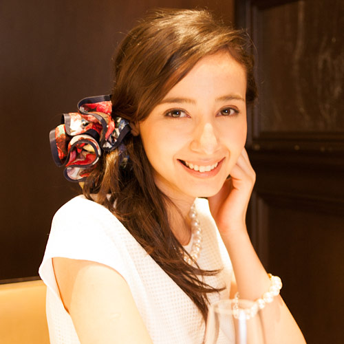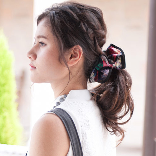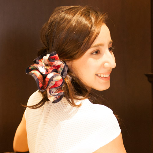 気品あふれる花柄で、ヘアに彩りを添えるシュシュ。
