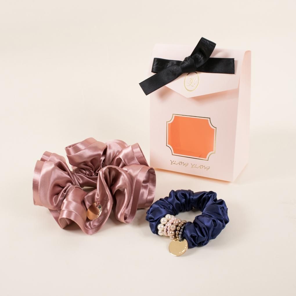 【ギフトBOX入り】シュシュセット(グリーンL+ローズピンクM)YLANG YLANG(イラン イラン)