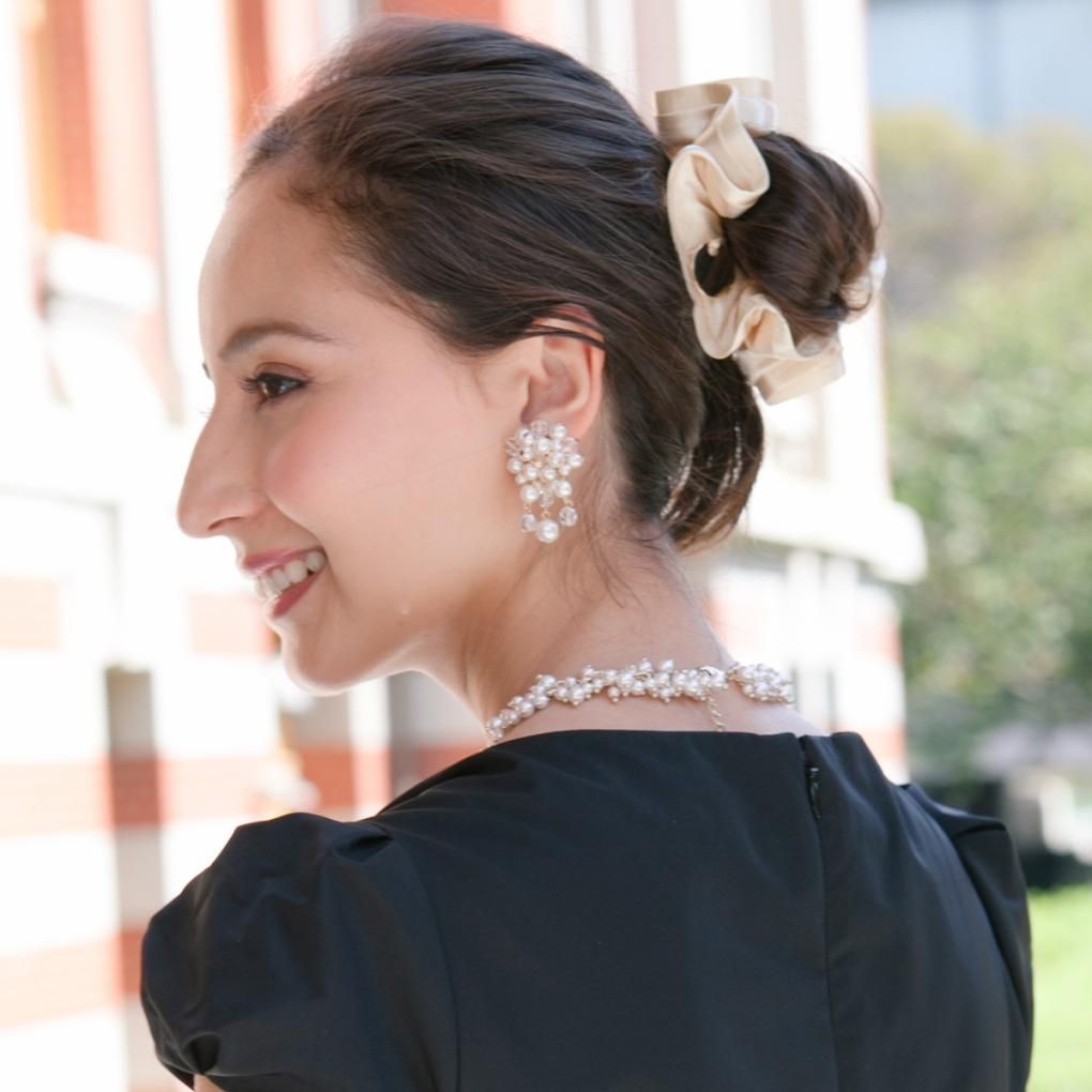 ヘアを華やかに彩る大ぶりなサイジングで、オケージョンにもピッタリです。