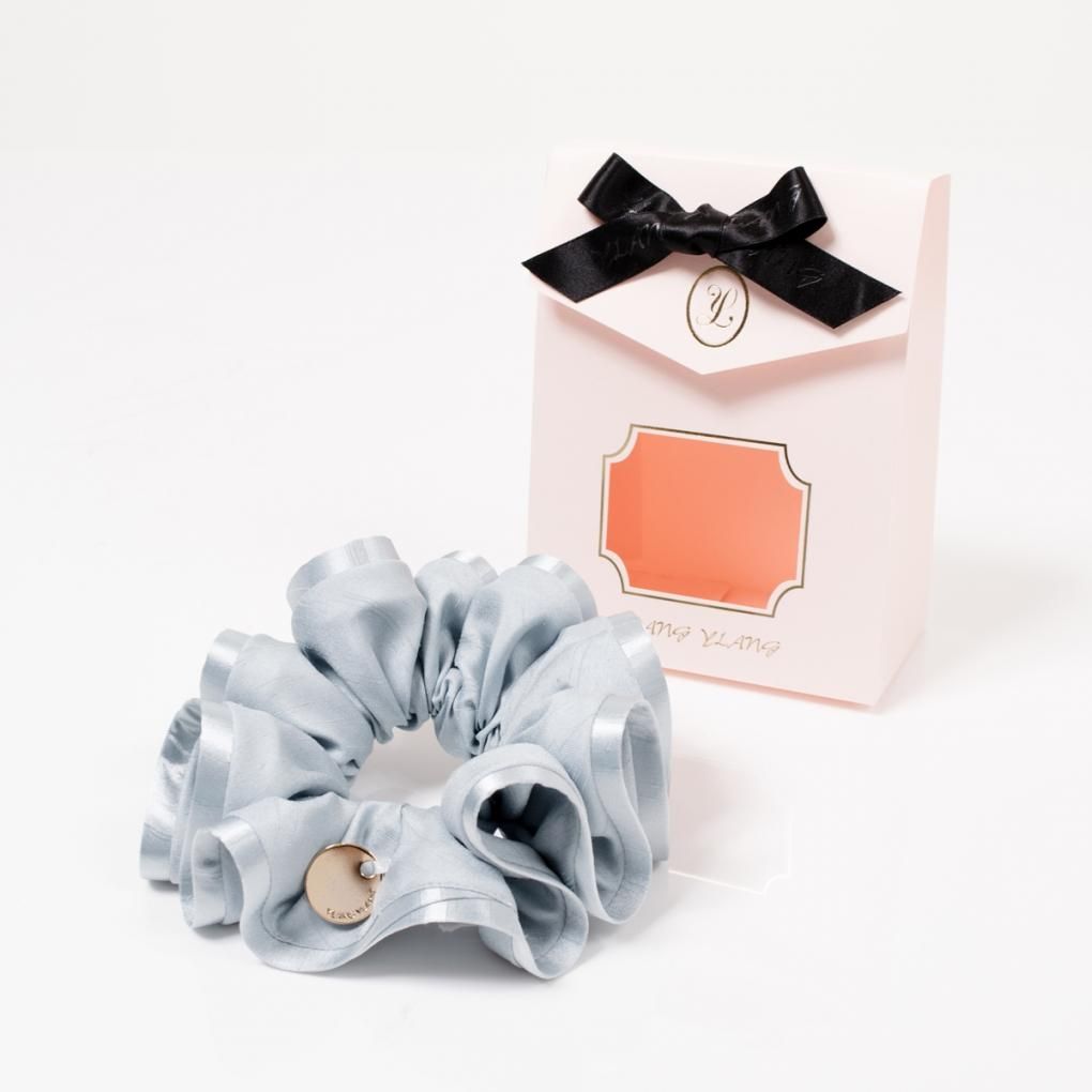 【ギフトBOX入り】シアーチェックシュシュ(サックス)YLANG YLANG(イラン イラン)